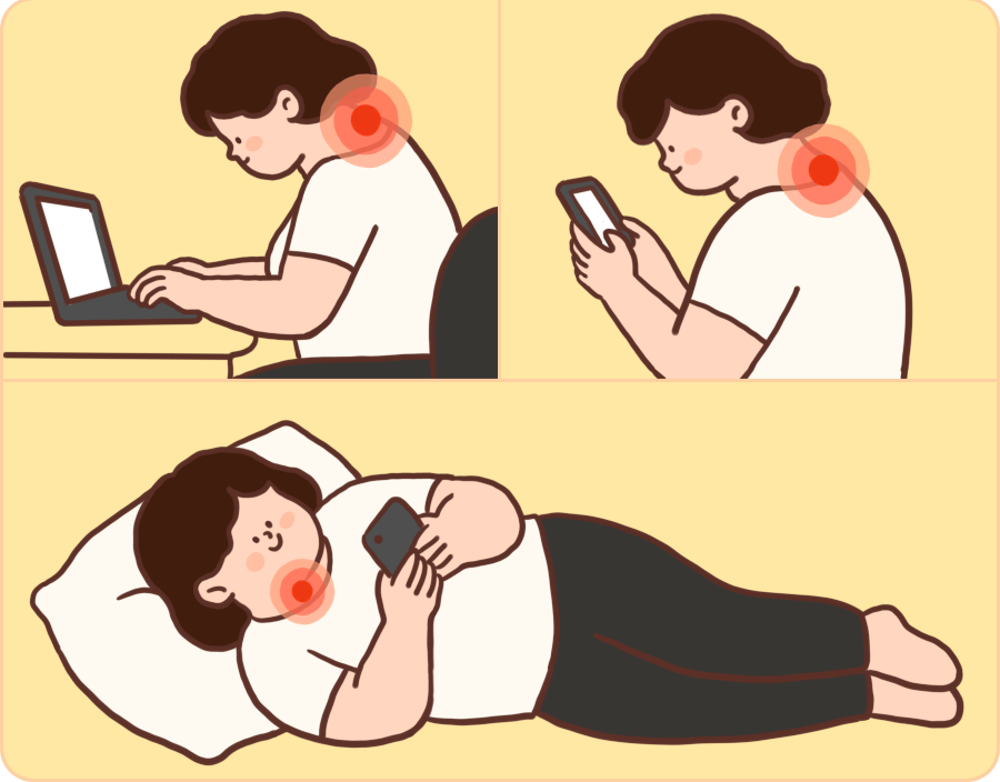 一天下来,我们的脖子几乎 16 个小时都在低头!这可苦了脖子周围的肌肉,为了撑住这颗往前伸的脑袋,脖子后方的肌肉群就要一直“加班”!